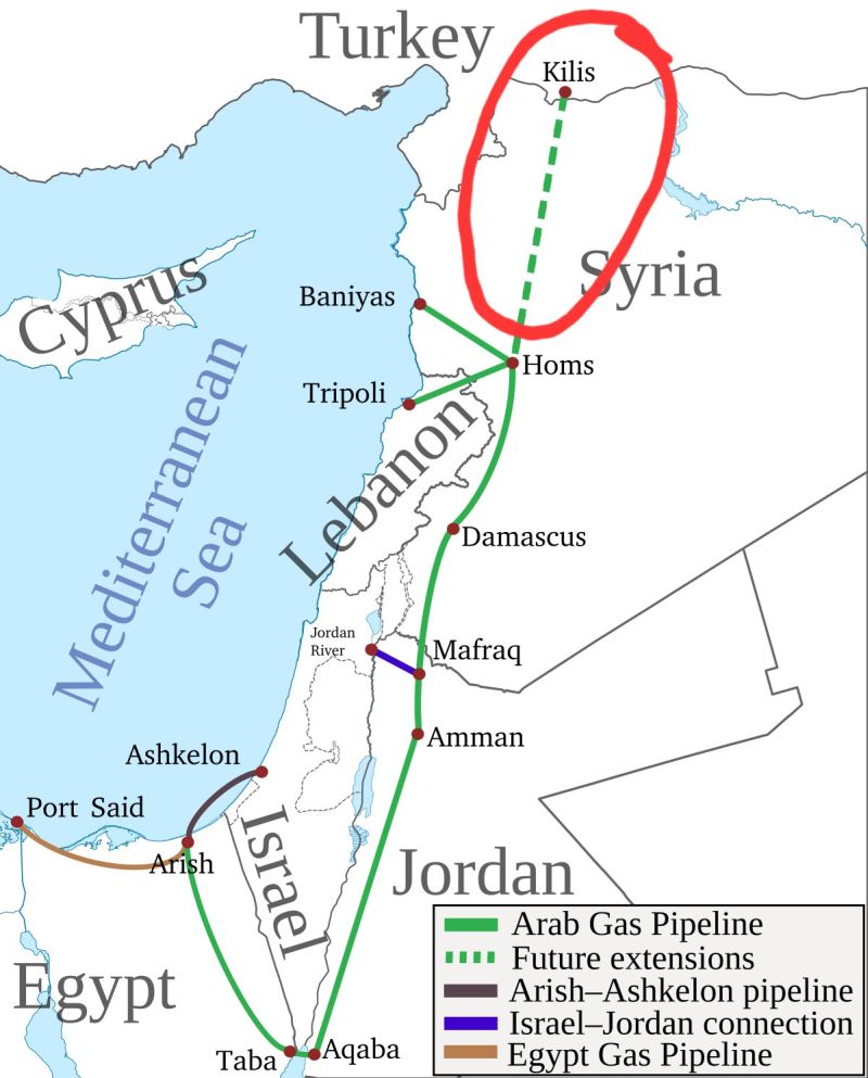 طبق برخی گزارشها، قرار است این خط لوله از طریق جنوب سوریه به حیفا در شمال اسرائیل (در امتداد خط کریات شمونا-آکو-حیفا) امتداد یابد، و انشعابی به طرابلس در شمال لبنان داشته باشد، و هزینه ترانزیت گاز با عرضه گاز بیشتر به سوریه پرداخت خواهد شد. همچنین طرحهایی برای نوسازی «خط لوله گاز عربی» که اسرائیل را به اردن و سپس به حمص در سوریه، واقع در ۱۵۰ کیلومتری مرز، متصل میکند، در دست بررسی است. آذربایجان قصد دارد با سرمایهگذاری تقریباً ۲۰۰ میلیون دلار به این سیستم متصل شود.