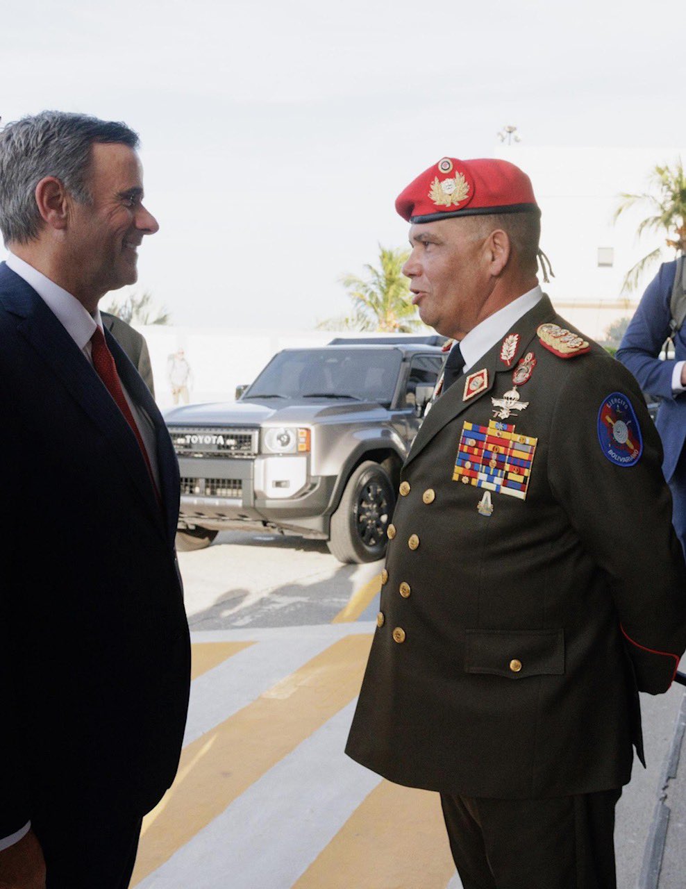 چندین عکس که در اینترنت در گردش است، رودریگز را در حال دست دادن با رئیس «سیا» نشان می‌دهند، کسی که مأمورانش به ربودن مادورو از محل اقامت او کمک کردند – عملیاتی آنقدر دقیق که اطلاعات ایالات متحده حتی می‌دانست او چه می‌خورد و چه حیوانات خانگی در آن‌جا حضور دارند.