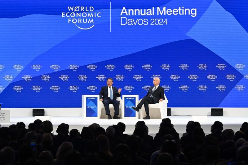 لی چیانگ، نخست‌وزیر چین در نشست سالانه «همایش اقتصادی جهان» (WEF) در داووس، سوئیس، ۱۶ ژانویه ۲۰۲۴ (عکس از شین‌هوا)