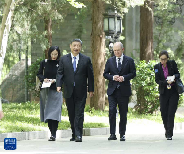 در صبح روز ۱۶ آوریل، رئیس‌جمهور شی جین‌پینگ با اولاف شولز صدراعظم آلمان در مهمان‌سرای دولتی دیائویوتای در پکن دیدار کرد.